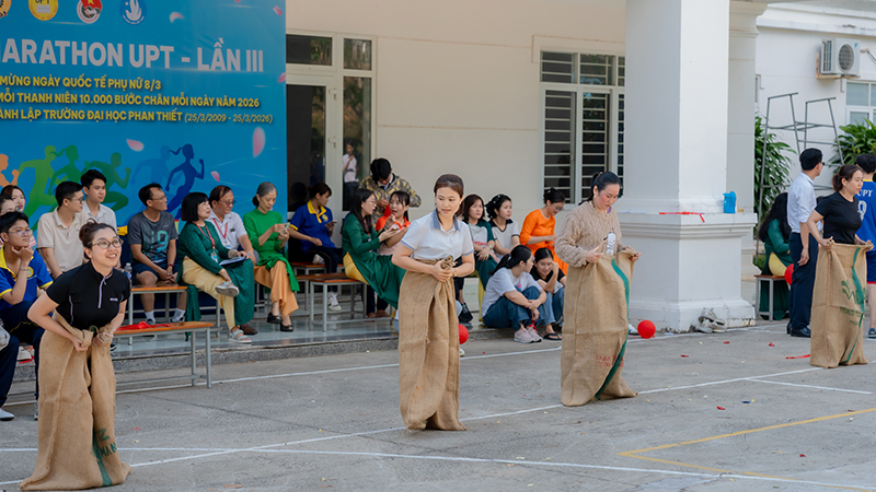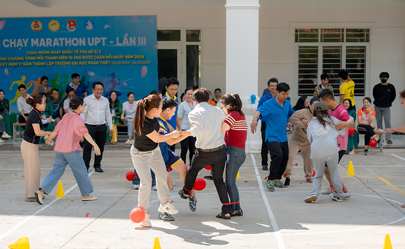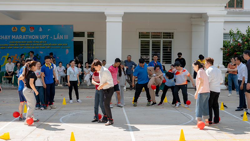 Điểm nhấn của chương trình là Giải chạy Marathon UPT lần III, thu hút sự tham gia hào hứng của đông đảo công đoàn viên và sinh viên Nhà trường. Bên cạnh đó, nhằm tạo thêm không khí vui tươi nhân Ngày Quốc tế Phụ nữ 8/3, Công đoàn Trường còn tổ chức nhiều trò chơi vận động tập thể như kéo co, đạp bong bóng và nhảy bao bố dành cho công đoàn viên. Các phần thi diễn ra trong bầu không khí sôi động với sự cổ vũ nhiệt tình của các Thầy Cô và sinh viên. Những tiếng cười giòn giã cùng tinh thần thi đấu nhiệt huyết đã góp phần tạo nên một ngày hội 8/3 thật sự ý nghĩa và đáng nhớ.
