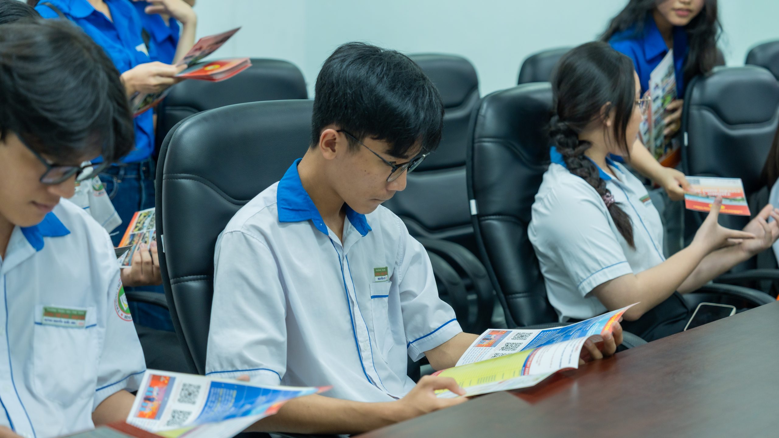 Các em học sinh tham khảo thông tin hướng nghiệp, tuyển sinh tại chương trình
